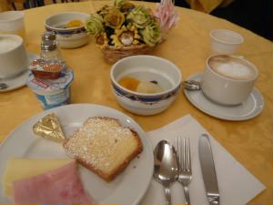 11月3日(月曜) 2日目♪ 朝食のビュッフェです。 たくさんの甘いパンと、ハムとチーズ、ヨーグルト、ジュースとコーヒー。 とても明るく、清潔なダイニングルームです。 |
