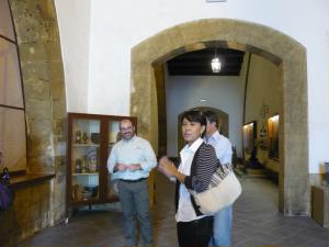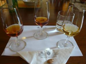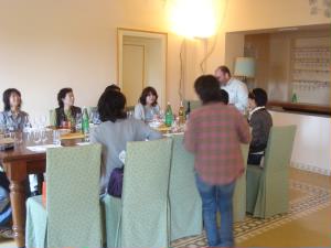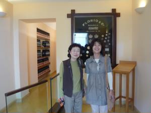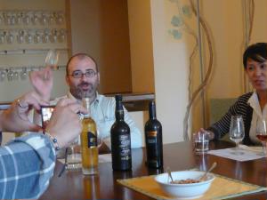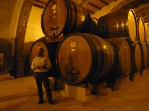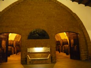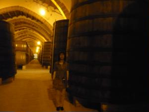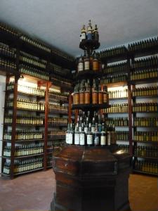 テイスティング用のお部屋。 ここで、2種類のマルサラ酒を試飲。アルコール度数18%くらいなので、昼食前の空きっ腹に染みます(笑) 葡萄は地元産品種のみを使用し基本的には辛口ワインにブランデーなどのアルコール、甘味調整用にミステッラ、色と苦味を加えるモスト・コットを混ぜて樽熟成させます。白系にオロとアンブラ、赤色にルビーノがあります。 |