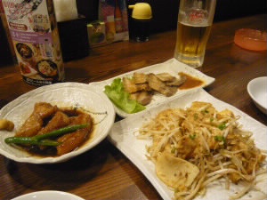 県庁前駅でゆいレールを降り、 JALシティホテルへ。 ホテルは国際通りの中央あたりにあります。 そこで、チェックインして、小腹を満たすために近所の居酒屋さんへ。 オリオンビールと、ラフテー、フーチャンプル、 スーチカー! |