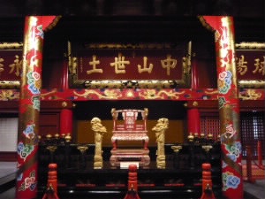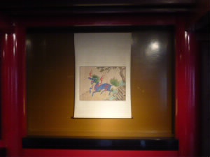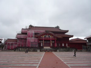 左:瑞泉門のすぐ手前に湧き出ているこの水が、瑞泉です。 左下:復元された首里城も、修復中。復元されてもうそんなに経ったのですね(^^; 右下:玉座近くにあった麒麟の掛け軸。 なんがかかっこいい。 |