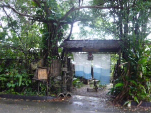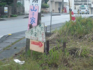 高速、途中のパーキングエリアで飲み物(たんかんジュース)と水族館の割引入場券を購入!さっそくサーターアンダギーを食べながらドライブ! でもね、高速道路も1時間で終点「許田」に到着。早い!意外に小さい島だったのね(^^;;; お昼は、以前雑誌SPURの編集で働いていたマキちゃんに教えてもらった沖縄ソバのお店「夢の舎」さん! 左下:ナビでも見つかりません(笑)この看板が重要! |