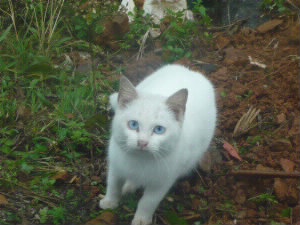 お店に行く途中の道で、無人の野菜売場の棚にちょこんと座っていたにゃんこ♪ 買われちゃうよ(笑) 帰りに見たら、棚から降りてました。 さっきは、小雨が降っていたから雨宿りして、屋根のある野菜売場の棚に居たのかな?(^^) 目がブルーで、美人のにゃんこです。 |