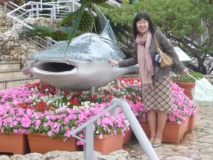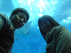 そして、美ら海水族館に到着! 左:マンタと一緒に(^^) 左下:鮫♪ 右下:ナポレオンフィッシュ♪ニューカレドニアの水族館で会って依頼だわ〜 |