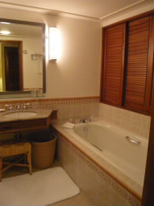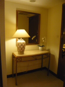 左上:部屋を入ってすぐのエントランスにコンソールテーブル。 右上:ベッドの横の扉(窓?)を開けると、ベッドルームでその向こうに海が見えます。 左:トイレとシャワーブース 素敵なリゾートホテルですね!でも、夏は金額が高くて我が家には無理だなぁ。。。なので我が家は安い海外にします(^^; |