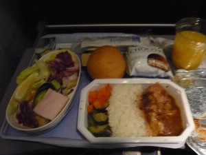 2011年4月28日(木曜日) 今回はクラブツーリズムさんのツアー。 団体旅行は2002年のギリシャ旅行以来。添乗員さんつきなので、ラクチン!23人のツアーです。 15:55 コンチネンタル航空006便でヒューストンへ(所要時間11時間55分) お決まりの機内食。アメリカの機内食・・・です・・・。 左:私はビーフ 左下:旦那様はチキン 右下:夜食は・・・ハンバーガーとアイス!(笑) |