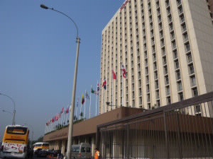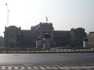 左:シェラトンホテルの外観。これからバスでナスカに向かいます。その前に、ちょっとホテルの周りをお散歩。 左下:これは何のたてものだっけ?役所・・・だったかな? 右下:中央駅 |