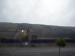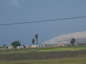 9:00ホテル出発、 ナスカに向けて、8時間バスの旅です。結構あるね(^^; 左下:高速道路に乗ります。 右下:オリーブの木がいっぱいです |