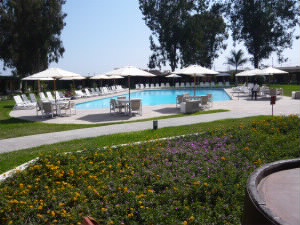 ここは海沿いのリゾートホテルのようで、レストランを出るとプールがありました。 ビーチベッドとパラソルも並び、その後ろに平屋で部屋が並んでいます。 何組かのカップルがビーチベッドでくつろいでいました。 いいなぁ〜、こんなホテルでビーチリゾート。 花も咲いてとても綺麗。手入れが本当に行き届いているホテルです。 |