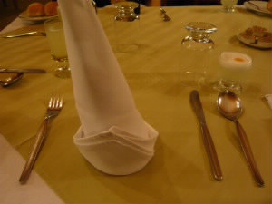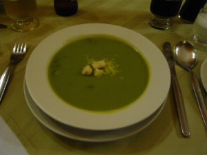 お料理は、アスパラガスのスープ、タジャリン・サルタードという焼きそば、プリンです。 |
