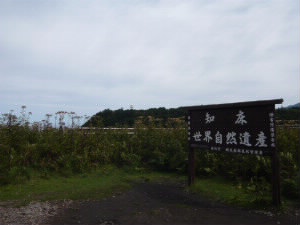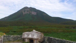 さて、知床半島を横断して東側に行きます。 中間地点の知床峠です。正面に羅臼岳がそびえています。 |