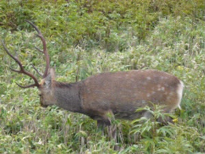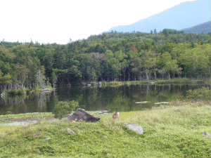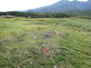 知床五湖です。 全部周るとたいへんなので、1湖だけで(^^;; 木製の遊歩道が自然と馴染んでいて、とても綺麗でした。そして、ここにもシカが・・・居ます。 |