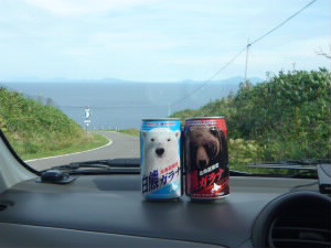 ここから、北方領土がよく見えます。本当に近いんです。 でも、ロシアなんですね・・・悲しい。 左下:画像で解るかなぁ?水平線の上に国後島がくっきり見えます。 右下:北海道に来たら、飲み物はガラナだよね〜w コンビニでみつけました!白熊ガラナと羆ガラナ(^^)v |