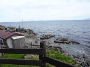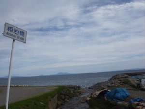 知床の東側、車で行ける最北端がここ相泊橋です。 海の向こうに見えるのは国後島。 |