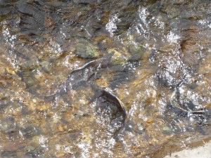 鮭がものすごい数、遡上してました。 生まれて初めてみました! こんなにたくさんの鮭が、どんどん遡上してくるの。 見ていて飽きないほどの、面白い光景でした。 |
