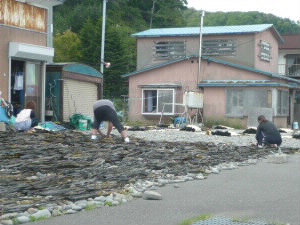 路上で、羅臼昆布を干してました。 いいなぁ、この光景。 |