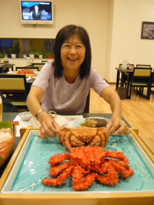 この日の夕飯もすごいよ〜〜〜! 花咲ガニと毛ガニが1ぱいずつと、お刺身の船盛りがついて、さらに、羅臼のビュッフェ! |