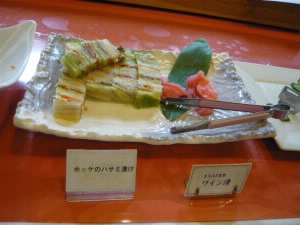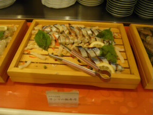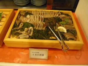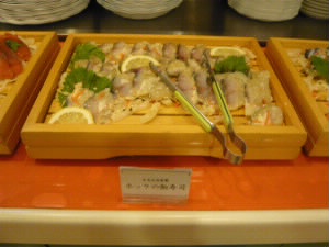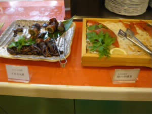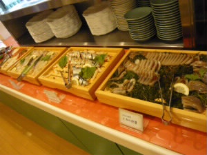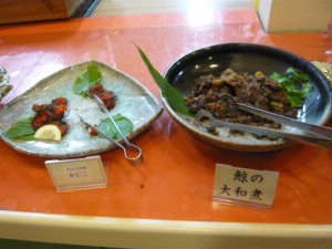 イカ、さんま、ホッケ、鮭、鯨・・・などなど、た〜くさんの料理が並びます。 |