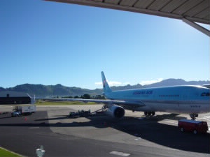 4月29日(木曜日) スカイチームのマイレージなので大韓航空でフィジーに行きます。 成田12:55発−仁川15:35着 日本ー韓国線の大韓航空の食事って・・・ イマイチですよね(^^;;; 梅ゼリーだけ美味しく頂きました。。。 トランジットで4時間(−。−;; 左下:旦那様はバーガーキングを、私は冷麺を食べました(笑) 右下:ゲートに日本語で「ナディ」って書いてあります。 日本ではナンディというのでちょっと違和感。 |