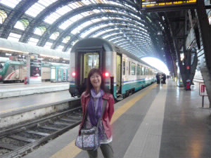 4月28日(日曜日) 7時過ぎにチェックアウト。中央駅のパニーノ屋さんでブリオッシュとカプチーノ。 8:10ミラノ発 IC1533でモンテロッソを目指します。 |