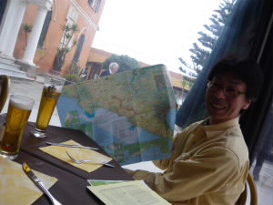 11:33モンテロッソ駅着 左下:駅のインフォメーションでチンクエテッレの地図と時刻表をゲット。明日からの計画を立てながら、ランチです。 モンテロッソ・アル・マーレは、チンクエテッレで一番西の町です。 |