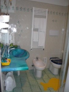 ホテルはとっても可愛らしい La Villa degli Argentieri をネットで予約。 お部屋は11号室。部屋番号はイカの絵のミラータイルです。 |