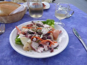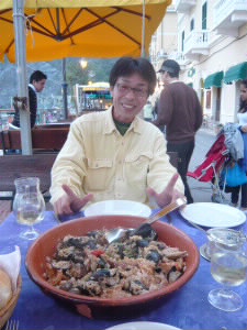 ジェラートやさんの隣のお店で、夕飯にしました。 店内でも食べられますが、通りを挟んだ海を見ながらの外席で食べました。 アンティはシーフードサラダと生ハム。プリモにシーフードリゾット!!美味しい♪ |
