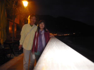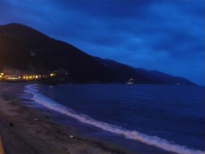 夕食を食べて、「ロマンチックな夜のお散歩」♪隣のヴェルナッツァの町の明かりが綺麗です。 |