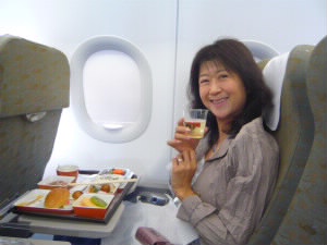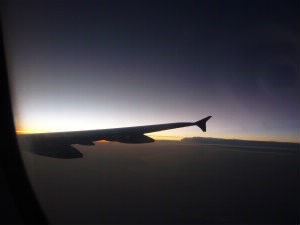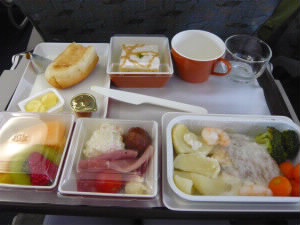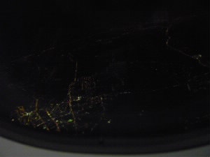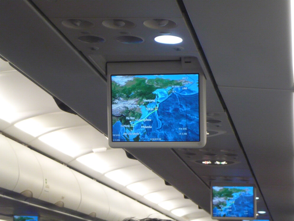 右下:小さい飛行機なのでセルフバックモニターではありませんでした。飛行ルートの世界地図を見ると、近い。(クリックすると大きくなります) |