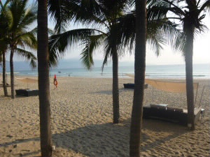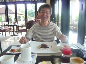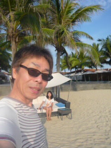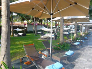 ここのホテルは、いつ、どこで朝食を食べてもOKなんです。なのでビーチのこのソファーで食べている人もいました。