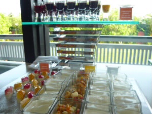右下:ヨーグルトとたくさんの種類のソース。そしてフルーツ寿司!?