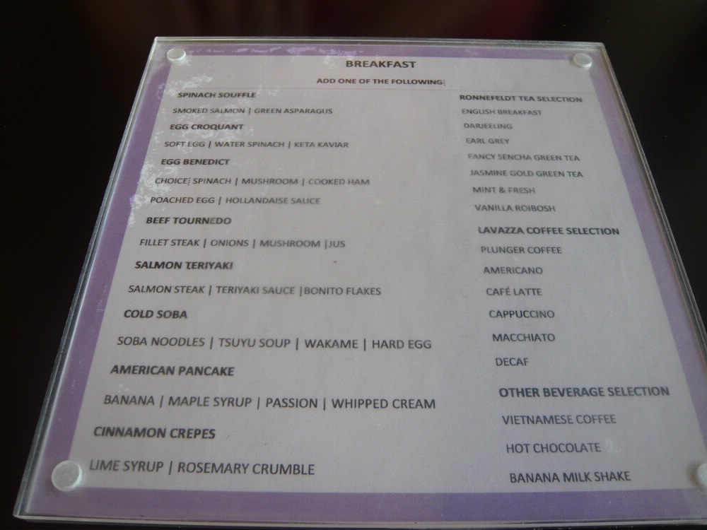 メインレストランで食べる場合は、メイン料理をドリンクを選び、あとはビュッフェメニューから好きに選びます。