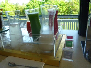 毎日、いろいろなバリエーションのフレッシュジュース。私のお気に入りはスイカジュース!