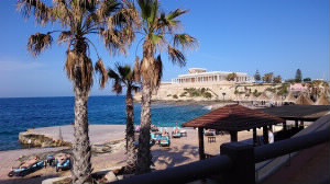 日本を離陸して23時間40分でマルタに到着。機内食でお腹がすいているのか満腹なのかイマイチわからなかったので、とりあえずビール。 そして、旦那様はいつものカラマリフリット。私はいつものムール貝(笑) 今回の旅のポイント1つ目の花火大会が始まるのを待ちます。 21:30スタートとホームページにあったので、21時ごろ店を出て、会場の海沿いに移動しました。 |