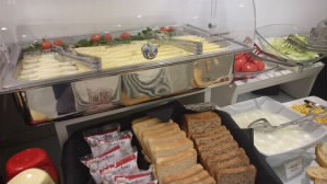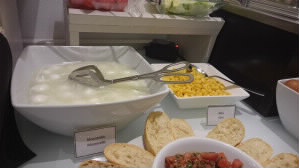 そして、朝食も美味しい♪ スプマンテもあるし(^^)v チーズはスカモルツァ、エメンタール、エダム、一口サイズのモッツァレラもありました♪ |