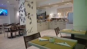 4月29日(日曜日) 朝食は地下1階。とても綺麗なダイニングルームです。 ここのビジネスホテル、部屋は狭いですが、ミラノ中央駅からすぐで立地も良く、綺麗で、設備もいいので、出張には最適ですよ。 |