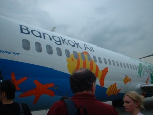 PG185便18:20発 サムイ行き。 バンコクエアラインに乗り換えです! ね〜ね〜、すんごく機体が可愛いの!! |