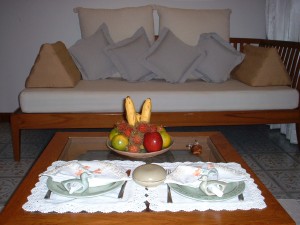 | 3段降りてリビングルームにはウエルカムフルーツ♪これは、毎日補充されます。 |
