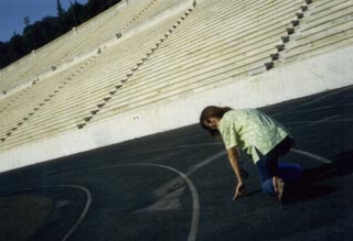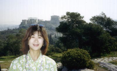 フィロパポスの丘から、アクロポリスを眺めます。・・・暑いです・・・。