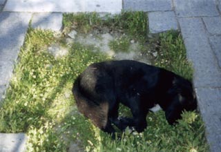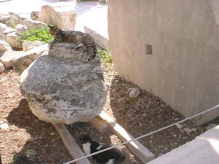 遺跡の日陰で涼んでいる猫ちゃん♪ 野生カモミールの中でお昼寝のわんこ♪