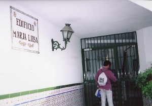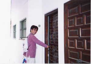 車で約30分で今回滞在する街、フエンヒローラに到着。 フラットに入るのにまず鍵を開けます。 |