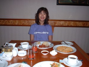 8月8日の朝〜! ダクストンホテルのモーニングビュッフェです。 卵料理のほか、パンケーキやワッフルもその場で焼いてくれます。 |