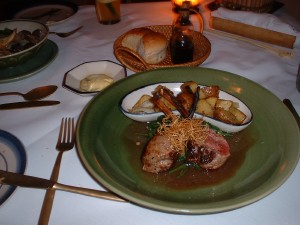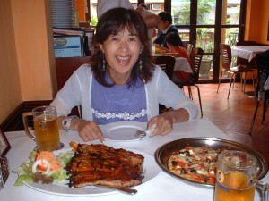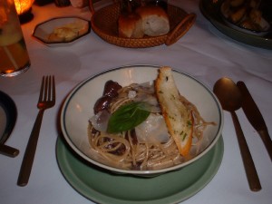私はイタリア人なので(!?)ふくろ茸のスパゲティー。旦那様はラムチョップ。 これだけ食べて$50。 |