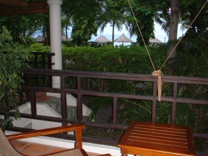 ベランダの先は海! シービューデラックスヴィラのお部屋です。 ベランダへのドアもオートロックになっていて、ベランダからビーチへ行く事もできます。 |