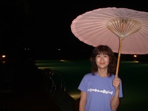 夜、雨が降って来ました。 蛇の目傘をさして、お散歩。 |