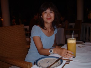 夕飯はメインレストランで。 ランチがおなかにもたれていたので、ビールはやめてフルーツジュース。 ここの食器はベトナムで有名なバッチャン焼きの陶器。で、トンボ柄のシリーズか、下のグリーンの無地のシリーズでコーディネートされていました。 |